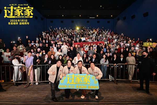 元旦档唯一合家欢电影《过家家》正式温暖开启“有爱相伴”全国路演,影片出品人、总制片人、传奇人影业董事长沈京喜先生,导演、编剧李太言,领衔主演成龙,主演潘斌龙、李萍首站到达天津,与现场观众分享影片拍摄的幕后趣事,围绕“家与陪伴”展开真挚对话,为天津观众提前送上了一份充满欢笑与感动的新年礼物。此次路演是影片自12月28日北京首映礼口碑获赞后,面向全国观众的首场互动。天津作为路演首站,以其浓厚的生活气息和温暖的城市性格,与影片“烟火气”十足的情感基调相得益彰。影片中质朴动人的情感打动了无数人,众多观众分享观影感受:“电影情感真挚,看的过程中有笑有泪,被这个家庭暖到了。”“从成龙大哥的身上,看到了我自己父亲的影子。”