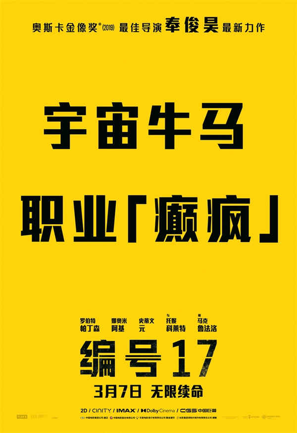 《编号17》由华纳兄弟影片公司出品,3月2日开启7城点映, 3月7日全国正式上映。奉俊昊导演最新实力打造,邀你来影院与天选“牛马”打工人米奇共赴一次掀翻宇宙级职场的颠覆之旅!