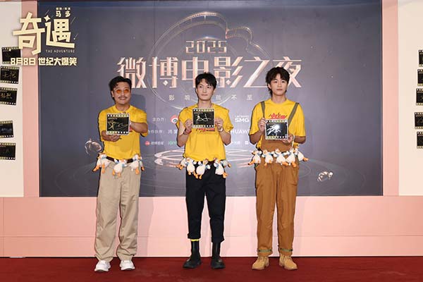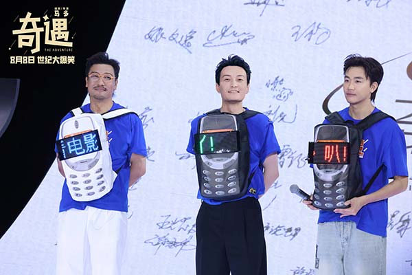 电影《奇遇》自官宣定档后,以同一角色双向穿越的故事设定吸引众多关注。戏里,演员的反差演绎带来爆笑故事;戏外,他们持续发散喜剧人魅力逗笑观众。在微博电影之夜红毯上,导演、编剧马多,领衔主演贾冰、王皓三人身穿电影靓丽组服、腰挂令人“眼花缭乱”的大鹅腰带亮相,红毯变成大型遛鹅现场,充满喜感的道具让人不禁好奇“大鹅”会在影片中带来怎样的笑料。成功瘦身的贾冰还大秀肌肉,和电影中的角色一起穿越回年轻时候的状态,引发全网热议。第二十七届上海国际电影节开幕式红毯上,“家族成员”则进一步壮大,三人携主演李梦、郑合惠子,特别主演杨皓宇,主演费启鸣、邓帅、郝瀚加入,亮眼别致的穿搭展示电影中现代与千禧时代的潮流碰撞。牛仔西装、靓丽长裙、复古Y2K等穿搭很是吸睛,将红毯切换成“大型秀场”。随后的抖音电影奇遇夜,导演、编剧马多,领衔主演贾冰、王皓更是以意想不到的方式出现。三人背着复古手机造型双肩包,如同穿越回18岁一般活力满满,背包上的彩色LED屏循环播放着电影档期信息,留下酷炫难忘的印象。此外,三位主创将背包中充满童年回忆的零食送给现场观众,别出心裁地邀请大家8月8日一起到影院看《奇遇》重回千禧年。电影中千禧年的故事设定与非主流时期的造型风格引得观众共情满满,活动中充满巧思的惊喜设计更让观众直呼“回忆杀”,给大家带来欢乐的同时,复刻了一代人的青春回忆。