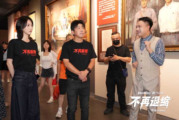 路演当日时逢八一建军节,导演齐星携主演潘斌龙、侯佳音一同参观了南昌八一起义纪念馆。站在纪念碑前,主创们神情肃穆,潘斌龙感慨:“八一南昌起义是新中国军魂的起点,今天能在这里讲述一部有关‘不再退缩’的电影,意义重大。”