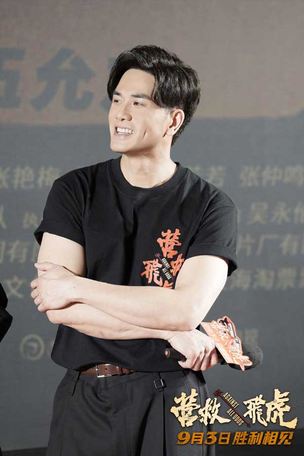 几位演员也现场分享了自己对于角色的理解,韩庚表示:“欢少这个角色因为是潜伏的地下党,在人物塑造上需要表现出他更多的层次,也要表现出特殊身份赋予他的性格以及不同于游击队战士的能力。”米切尔·霍格则分享了自己接到剧本时非常兴奋,因为自己的父亲就是空军,演一名空军一直是自己的梦想。陈永胜解读自己所饰的“沙胆仔”时说:“‘沙胆’就是什么都不怕,而他这样胆大的背后是有必胜的一颗心。”王丹妮片中的寸头造型令观众直呼“飒爽”,她表示:“三家姐既是一名女战士,也是一位母亲,所以她既有坚毅果敢的一面,也有细腻柔软的一面。”伍允龙则强调,影片中的动作设计想让观众看到,动作不是炫技,而是“情感”:“这是最真实的生死搏杀,每一场打斗都是为了活下去。”