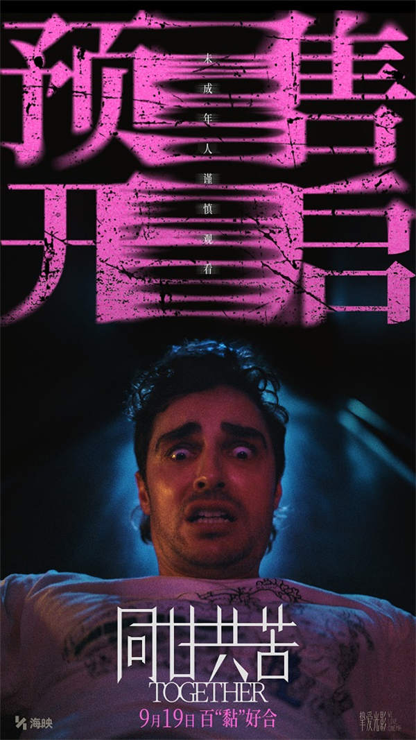 继官宣定档9月19日全国上映后,大尺度恐怖电影《同甘共苦》(Together)发布“贴脸开吓”版预告及“瞳孔放大”版海报。短短31秒的预告,却为观众接连奉上惊吓镜头,其身体恐怖画面血腥露骨,惊悚程度超乎想象,堪称“内地观众前所未见”。