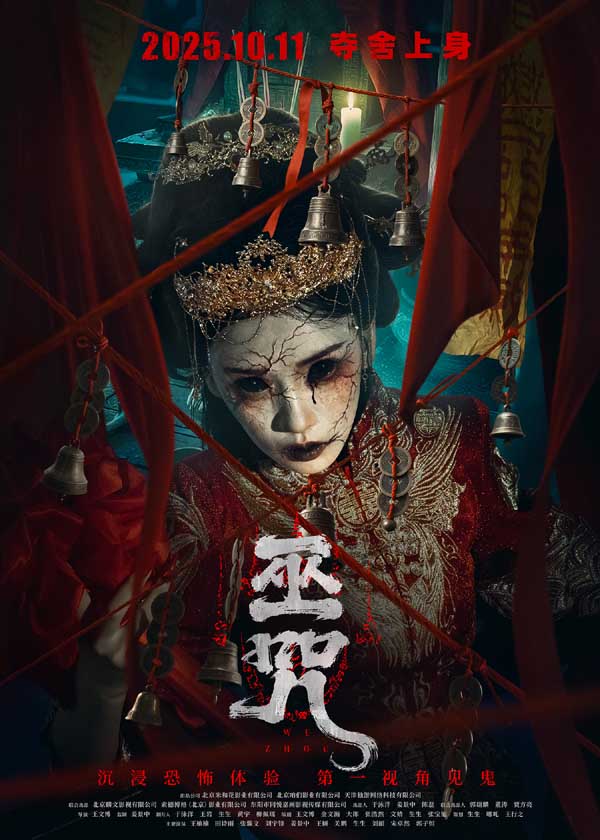 一直以来,中式民俗恐怖片以其民俗禁忌、中式元素、沉浸式真实体感等特点深受年轻恐迷们的喜爱。此次电影《巫咒》便是改编自真实东北民俗禁忌,首次将东北萨满、冥婚、诈⼫、狐仙、跳⼤神……这些在东北乡野⼝⼝相传的“真实禁忌”搬上⼤银幕,堪称是近两年来罕见纯正的中式恐怖盛宴,尤其是对东北⽼辈不敢提的“萨满”邪术进行全方位硬核解锁,让跳⼤神成为催命符!让符⽔灌喉、巫铃招魂、阴婚绑⼫、恶⿁⾯具、⾎祭仪式、附体⾛红——等一系列恐怖仪式环环相扣,充满神秘与未知,全片紧迫感TOP级拉满。并且,影片摒弃传统第三视角,而是以第⼀⼈称沉浸式拍摄见⿁,让观众置⾝“新娘”或“调查者”的视⾓,感受所有恐怖瞬间直扑眼前的刺激感,旨在打造前所未有的中式⼼理恐怖全景,展现出国产恐怖电影尺度天花板的魅力。