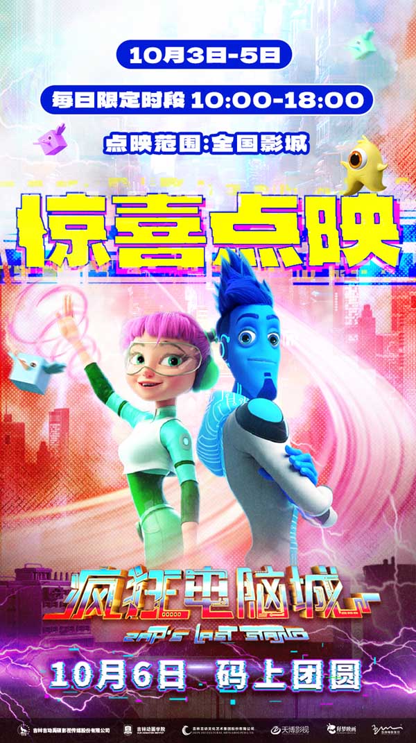 由吉林吉动禹硕影视传媒股份有限公司出品,吉林动画学院、吉林吉动文化艺术集团股份有限公司、吉林吉动天博影视制作股份有限公司、北京释梦映画影视文化股份有限公司联合出品的原创动画电影《疯狂电脑城》重磅释出终极预告及海报。本次发布不仅揭晓了主角扎普与迪凯的终极对决名场面,更通过“次世代”动画技术对赛博朋克美学的极致呈现,引发行业内外高度关注:有动画从业者盛赞其为“国产科幻动画标杆”,首映礼受邀观影的观众则直呼“扎普觉醒时的冲击对决,在大银幕上看绝对燃哭!”据悉,影片预售已经开启,随着终极物料的曝光,观众对10月6日全国上映的期待将进一步升温。