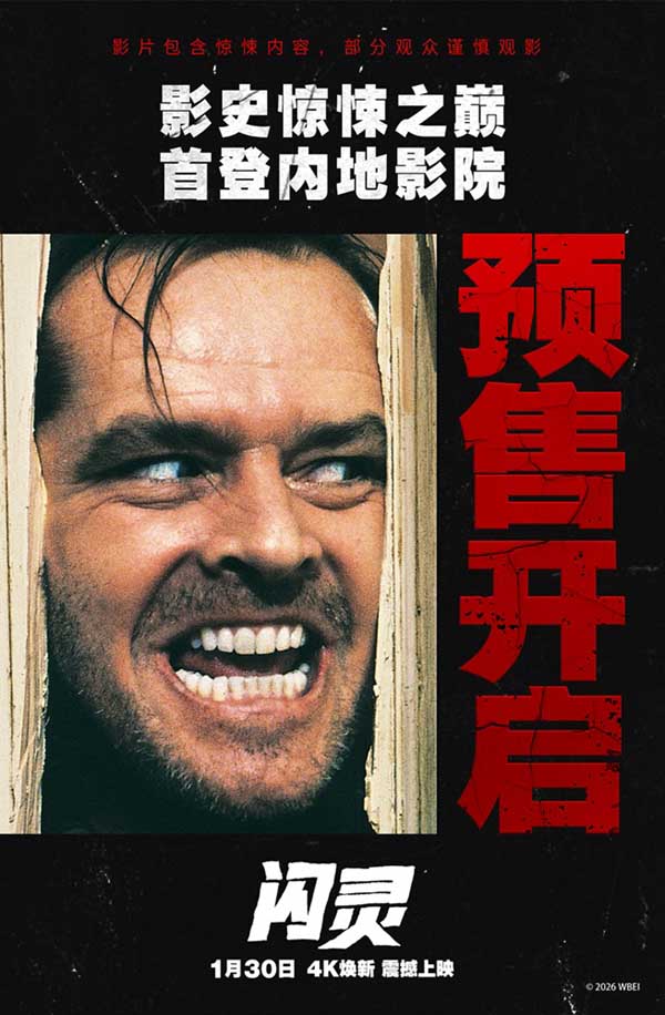 电影《闪灵》由华纳兄弟影片公司出品,4K焕新修复版已在各大票务平台开启预售!影片将于1月30日以普通2D、IMAX、CINITY三种制式首次在内地银幕献映,欢迎来电影院亲身体验这部影史经典的全新魅力。