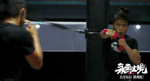 11月16日既是电影《永无止境》上映日,同时也是张伟丽与UFC女子蝇量级冠军“子弹姐”瓦伦蒂娜·舍甫琴科的决战日!这场比赛对于中国格斗及张伟丽个人职业生涯都具有非凡的意义。主动舍弃草量级冠军头衔,这是绝非凡人的勇气,升重挑战常年冠军霸主,更需要坚韧的毅力和绝对的实力!全球观众将见证一场传奇比赛,而中国观众与格斗迷将更有幸在比赛的同时,通过大银幕重温张伟丽上一次王者归来的热血故事。银幕内外,擂台上下,《永无止境》的上映与张伟丽的现实征战形成了奇妙的同频共振,让我们共同期待“格斗女王”再次改写世界格斗历史。