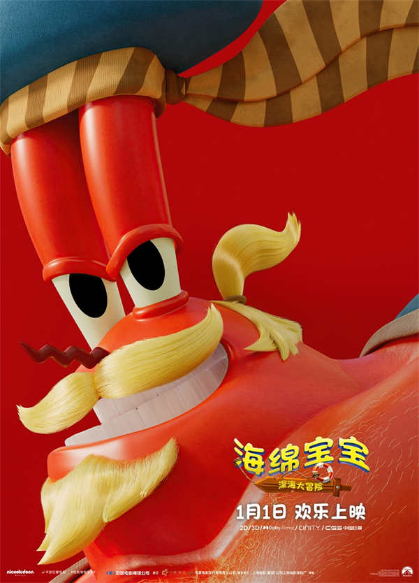 同时发布的角色海报,以生动的面部特写展现了各位主角的全新造型。海绵宝宝依然保持着标志性的灿烂笑容;派大星戴上了海盗眼罩,对于即将到来的冒险满脸都写着期待;蟹老板头戴水手帽,金色的胡子和小辫子造型十分帅气,其过往的冒险故事或许在电影中将被揭示;章鱼哥依旧是经典的不屑表情,但似乎对他的新假发相当满意;小蜗也换上了新的海盗装扮,期待在这一次的冒险中大显身手。此外,深受观众喜爱的角色珊迪、表情阴险的飞天魔鬼以及海盗船员“芭芭”也集体亮相。他们的登场将为这场深海冒险增添更多悬念与趣味,所有秘密都将在影院共同揭晓。