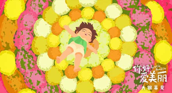 电影《你好,爱美丽》释出的海报以澄澈明快的粉、紫、蓝、绿为主色调,画面层次丰富,传递出美好、治愈的气息。海报以水面为界,水面之上是爱美丽惬意地仰躺着,眼里闪烁着好奇,粉白渐变的睡莲、鲜绿荷叶簇拥着她,远处的盛放的花树、嬉闹的孩童与屋舍更让整个画面流淌着天真烂漫。水面之下是爱美丽的倒影,星星点点的光晕增添了几分梦幻,共同构建出一个充满生命力的童话般的世界。倒影与现实呼应,暗合着电影关于成长、感知的情感内核。海报延续着电影独特的画风,粉彩与水彩般的笔触晕染交织出柔软朦胧的视觉质感,马卡龙配色使得画面五彩缤纷,仿佛将观众轻轻带入爱美丽童真的视角,再次做回小孩,领略世界的美好。